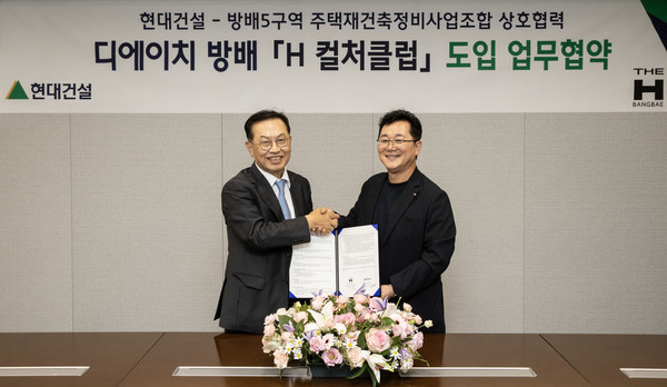 이에 따라 현대건설은 최근 서울 종로구 계동 본사에서 방배5구역 주택재건축정비사업조합과 ‘H 컬처클럽 도입’ 업무협약(MOU)을 체결했다.