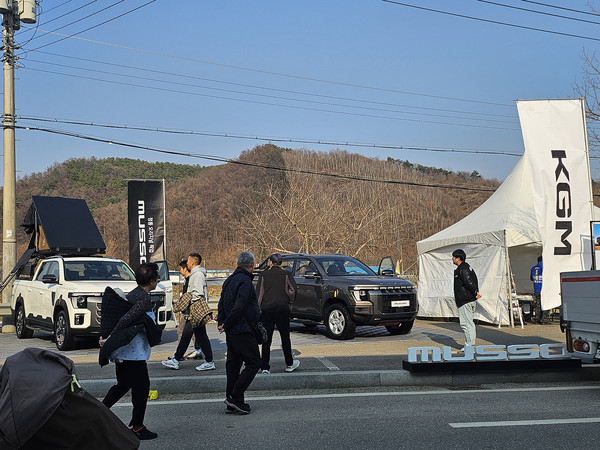 KGM은 행사 분위기와 어울리도록 캠핑 장비와 레저 용품을 배치한 아웃도어 콘셉트의 전시 부스를 마련하고, 픽업 모델인 ‘무쏘’와 ‘무쏘 EV’를 선보이며 관람객들의 눈길을 사로잡았다.